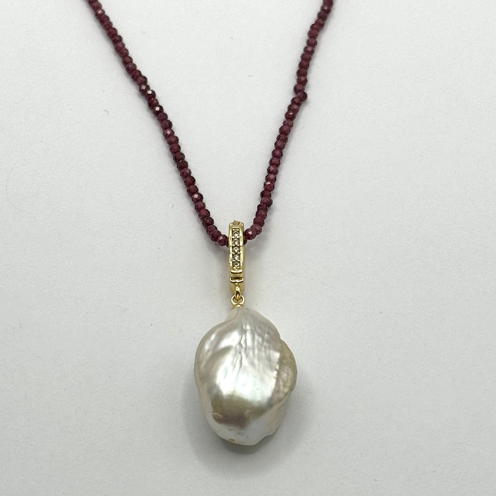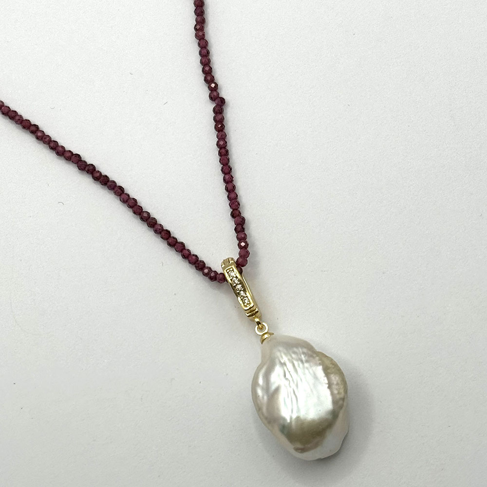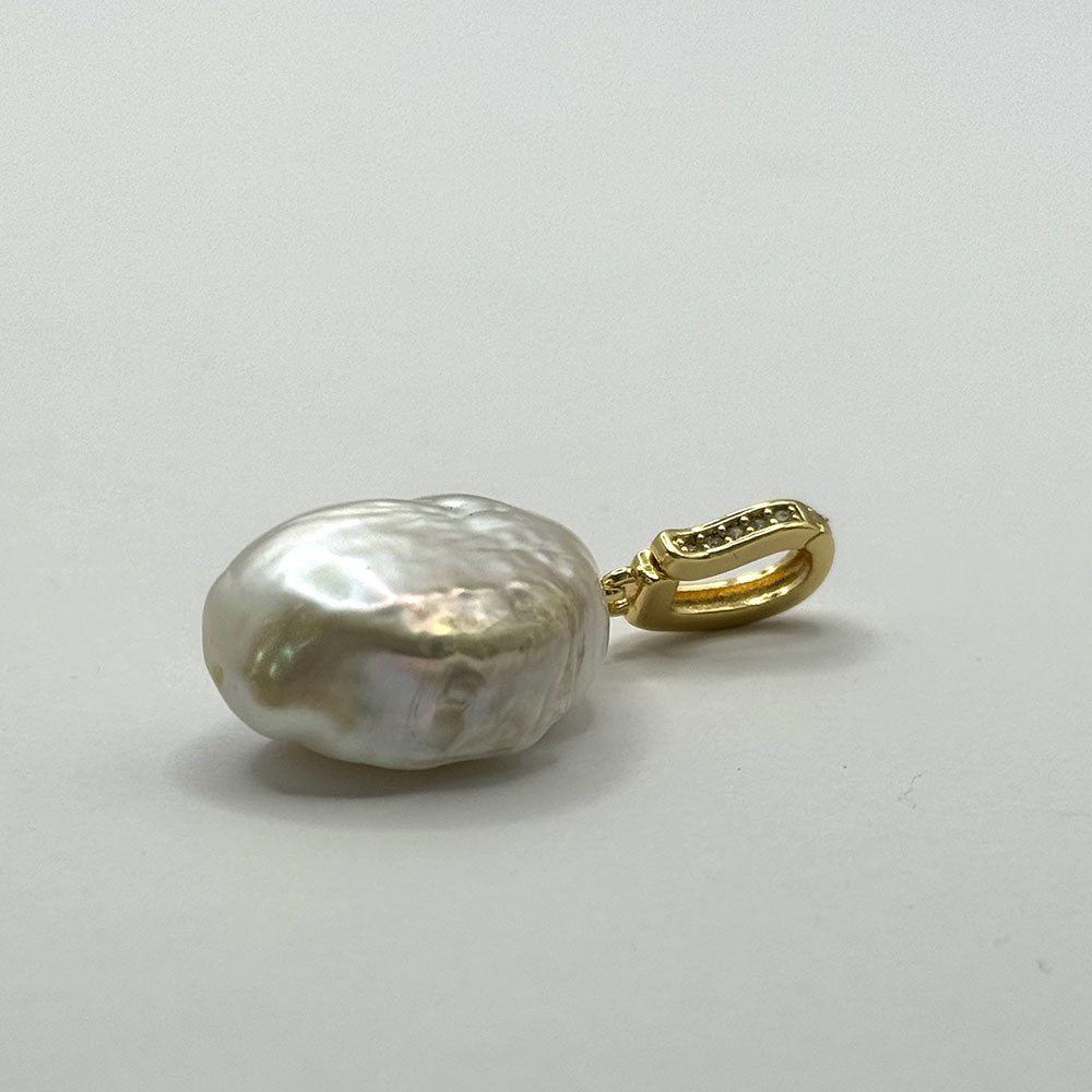 Colgante de mosquetón de latón con circonitas y baño de oro 18kts con perla barroca cultivada