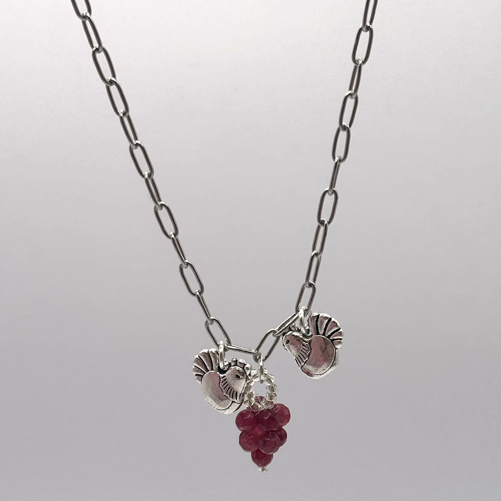 Collar de eslabones de acero con colgante de nuestra uva Vaduva de 4mm y gallinas de metal.