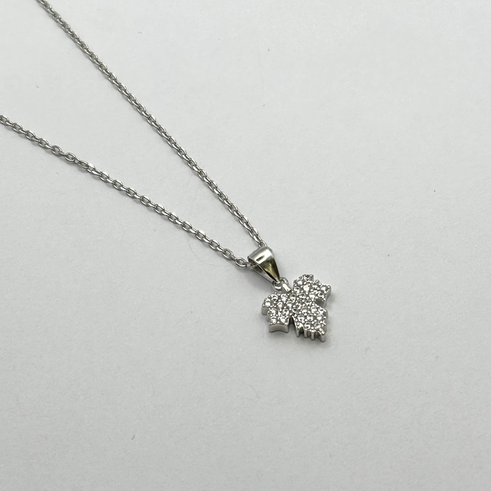 Collar de plata de 40-45cm con nuestra hoja de parra blanquina de plata de ley 925 y circonitas.