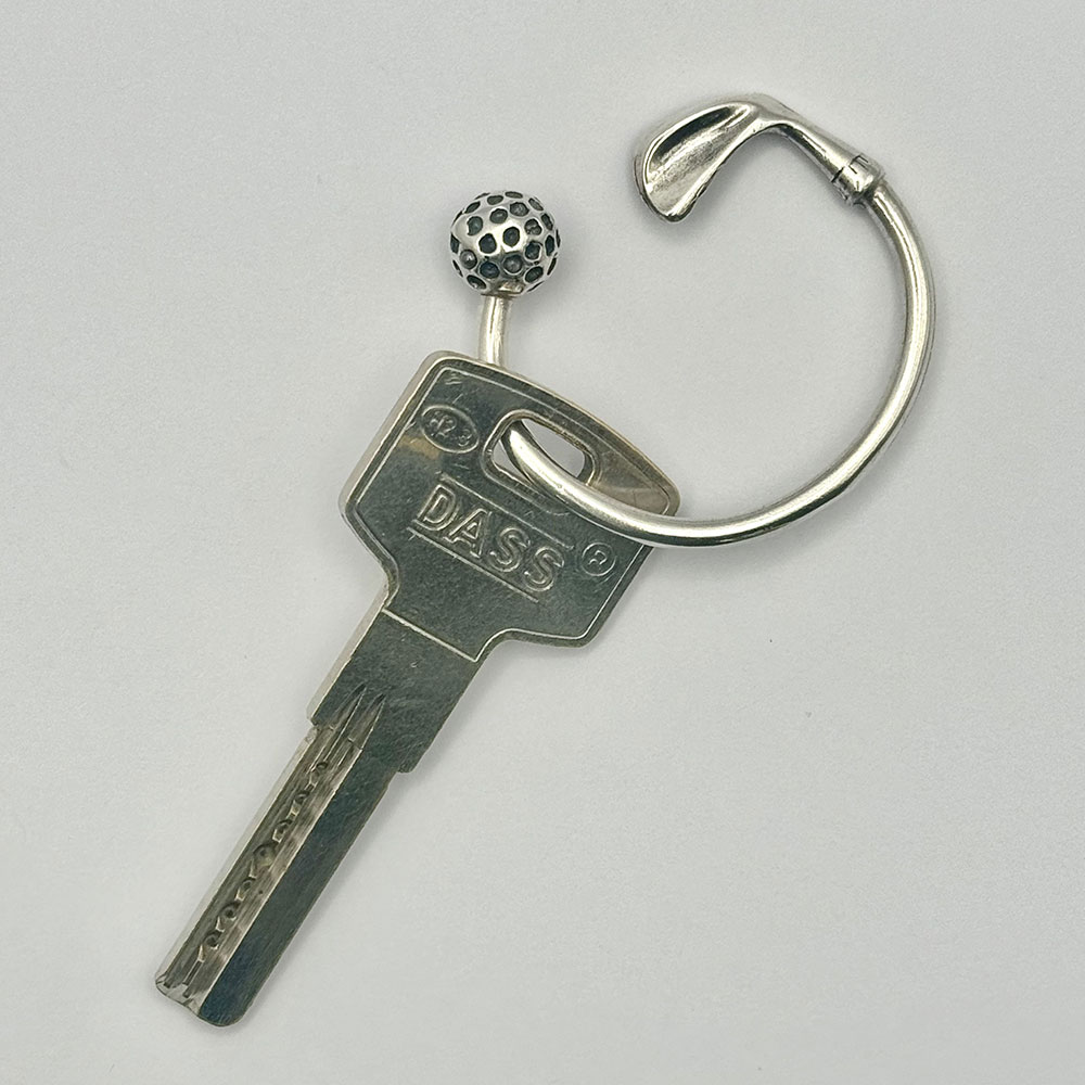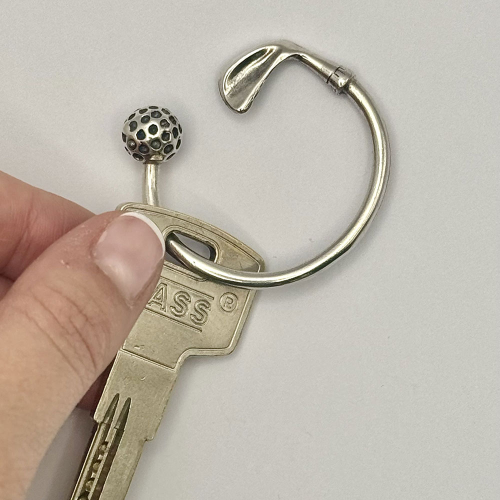 Llavero con forma de media luna con bola y palo de plata de ley 925.