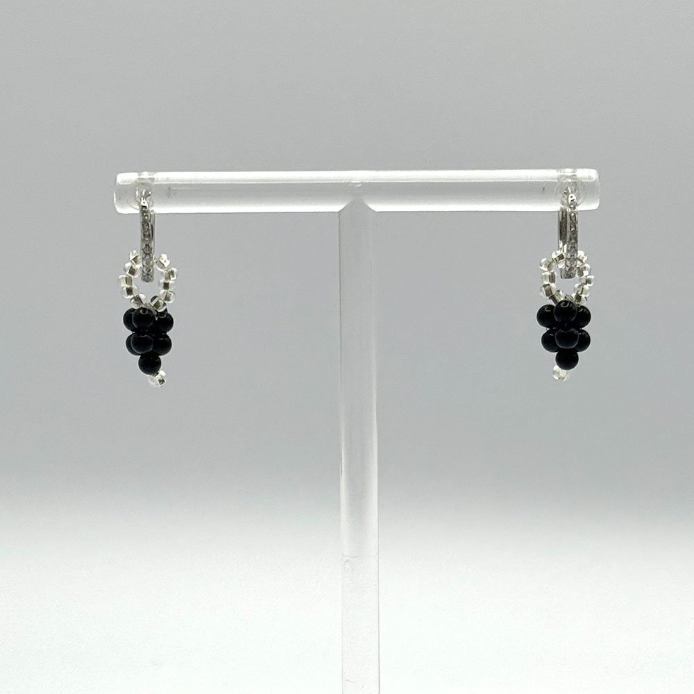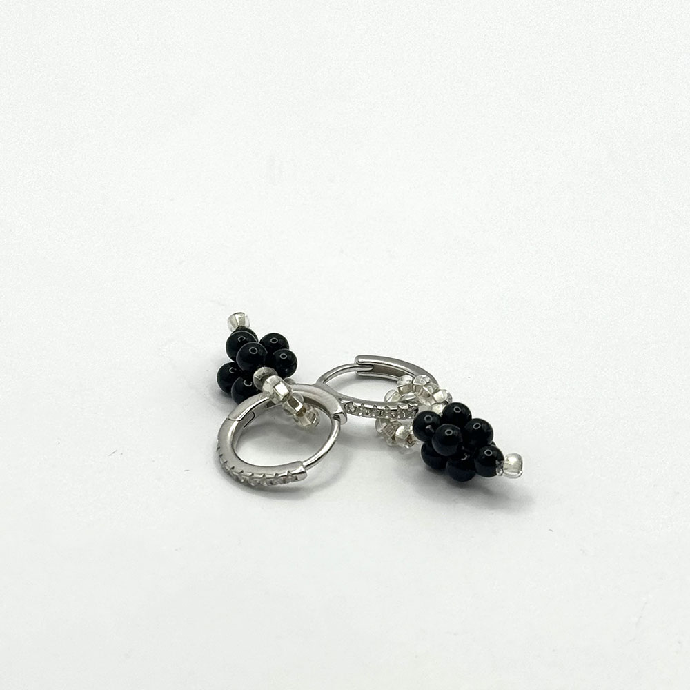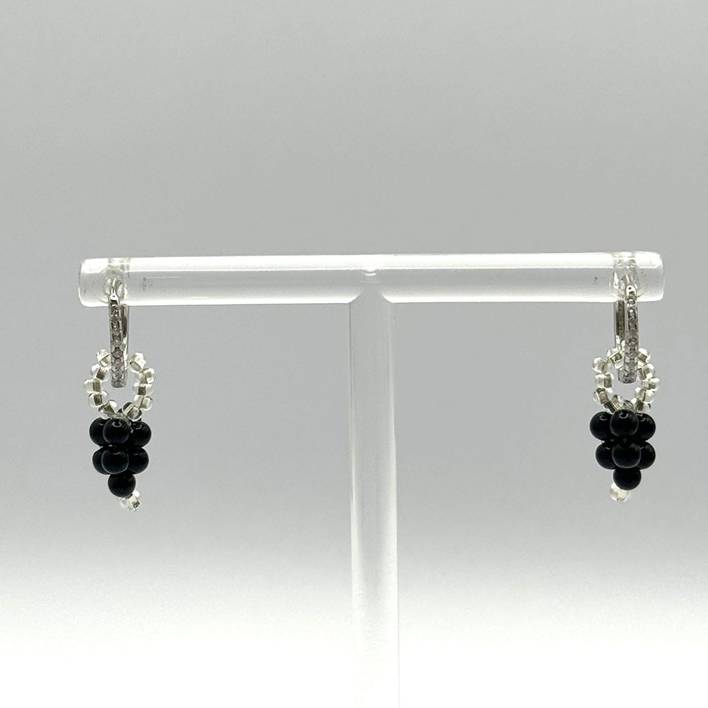 Pendientes de aro de plata de ley 925 de 14mm con circonitas con uva Vaduva de bolitas de ágatas de 4mm, peso unidad 1,70 gr. Aro disponible también en plata con baño de oro