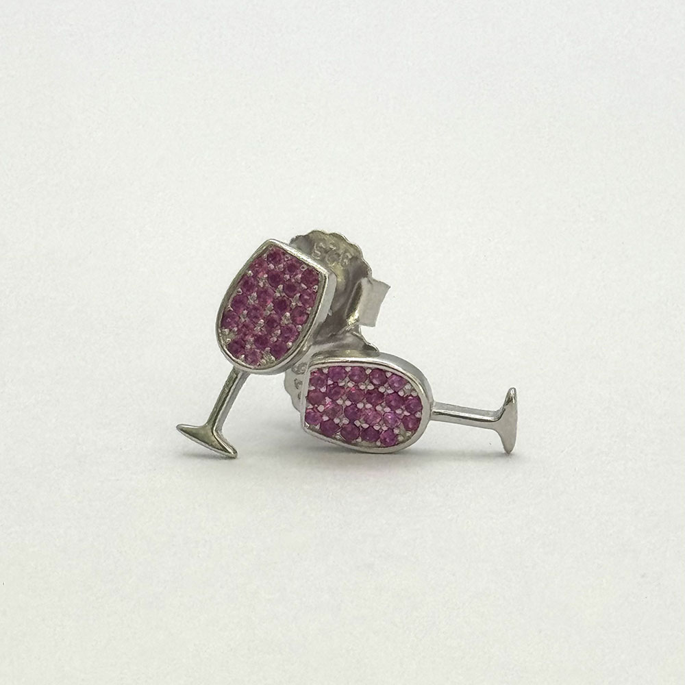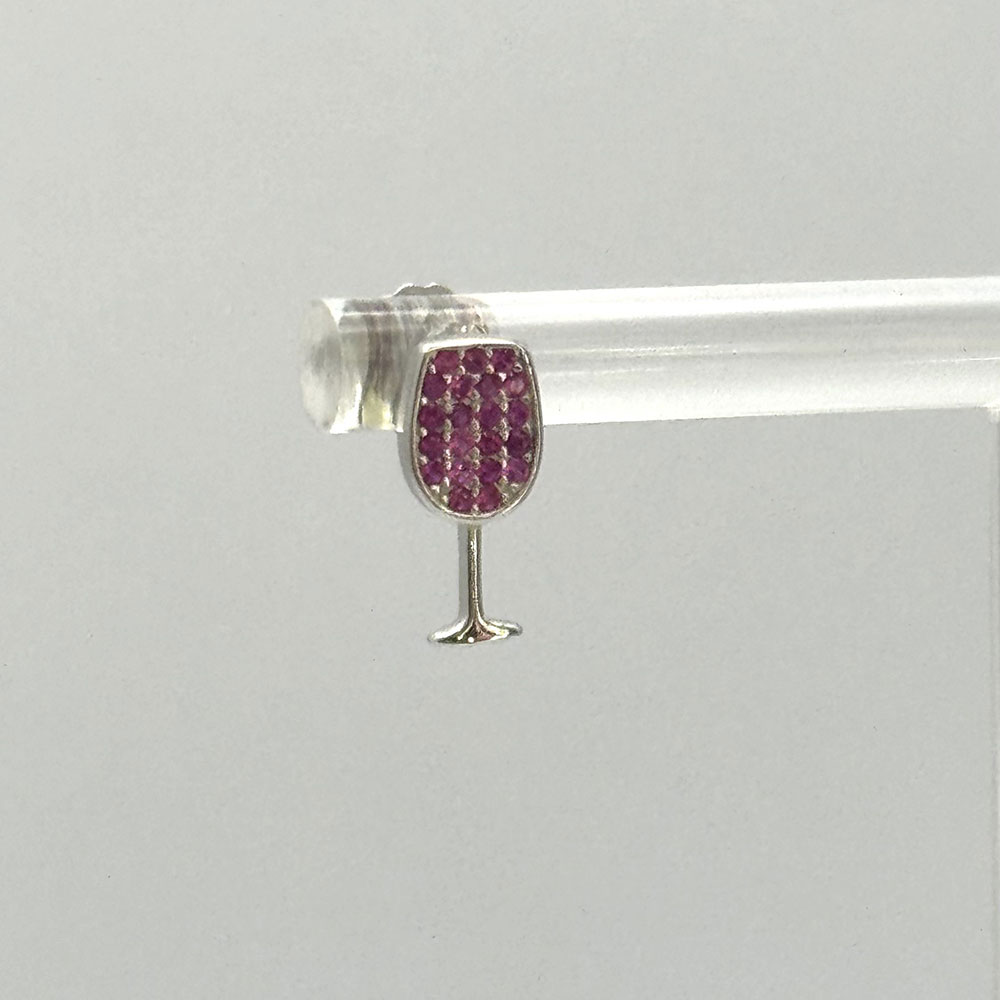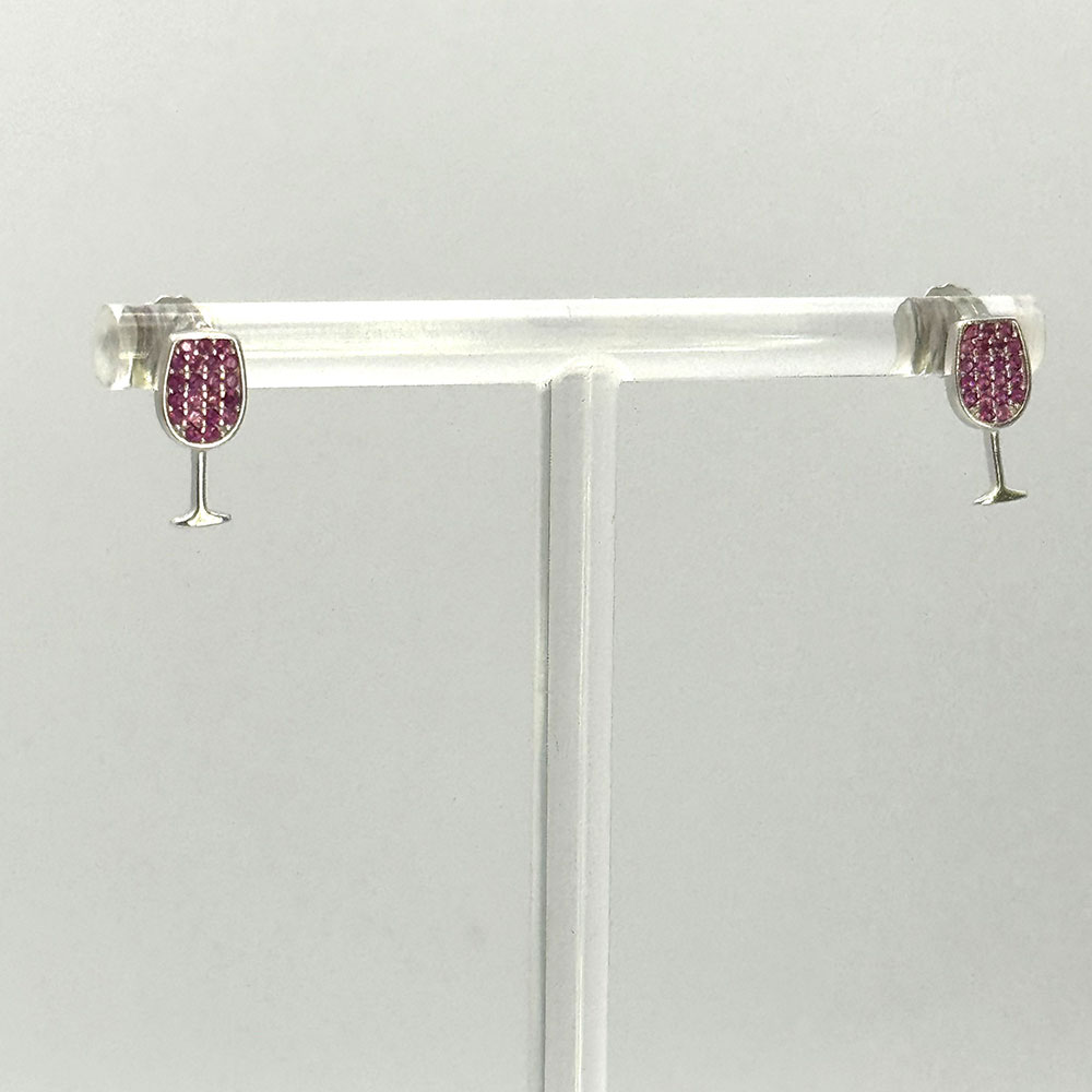 Pendientes de plata de ley 925 con motivo de copa de vino con circonitas de 13x5mm y peso por unidad 0,69 gr.