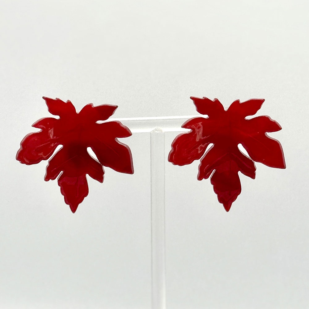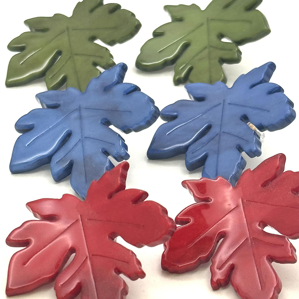 Pendientes con motivo de hoja de parra de resina en múltiples tonalidades de 4x4cm. Peso por unidad 2,72 gr.