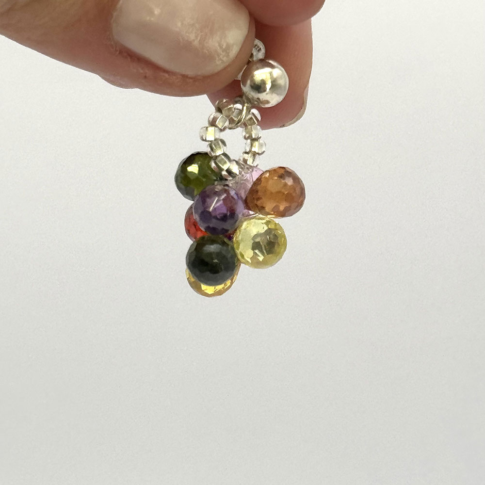 Pendiente de dormilona de 5mm de plata de ley 925 y uva Vaduva de circonitas, peso por unidad 4,85 gr. Disponibles en varios colores.