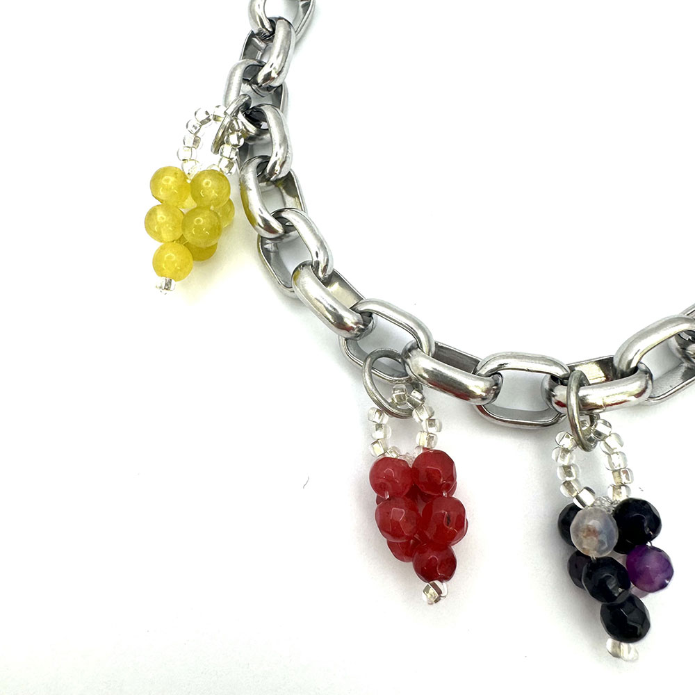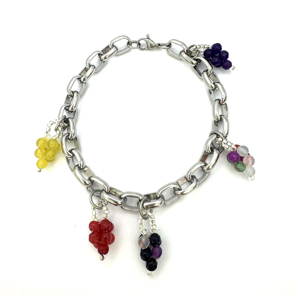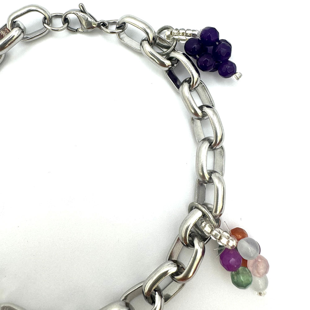 Pulsera de eslabones de acero y cinco uvitas de ágatas de 4mm