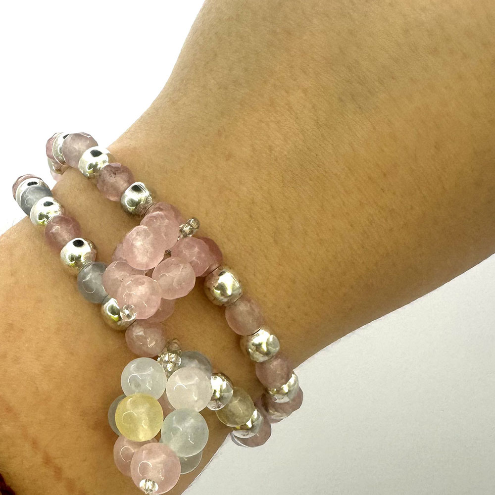 Pulsera elástica ajustable de bolas de metal y ágatas de 6mm y uva Vaduva. Disponibilidad en variedad de colores