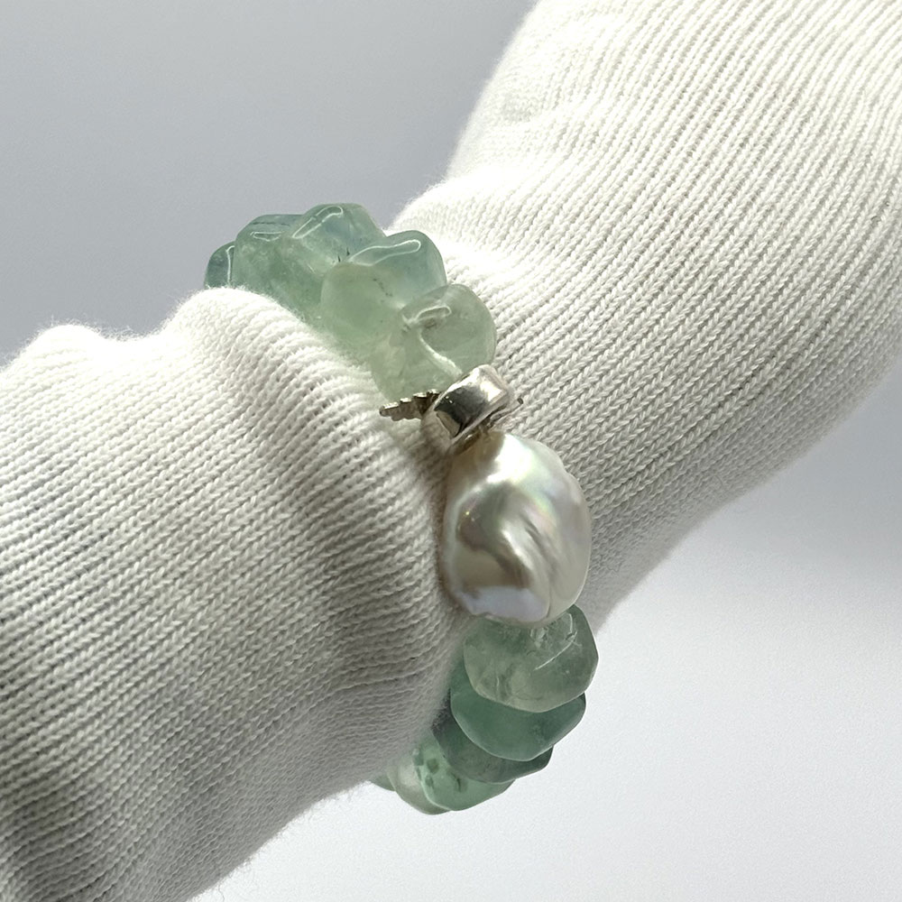 Exquisita Pulsera con fluoritas 6x15mm, perla cultivada y pieza de plata de ley 925.