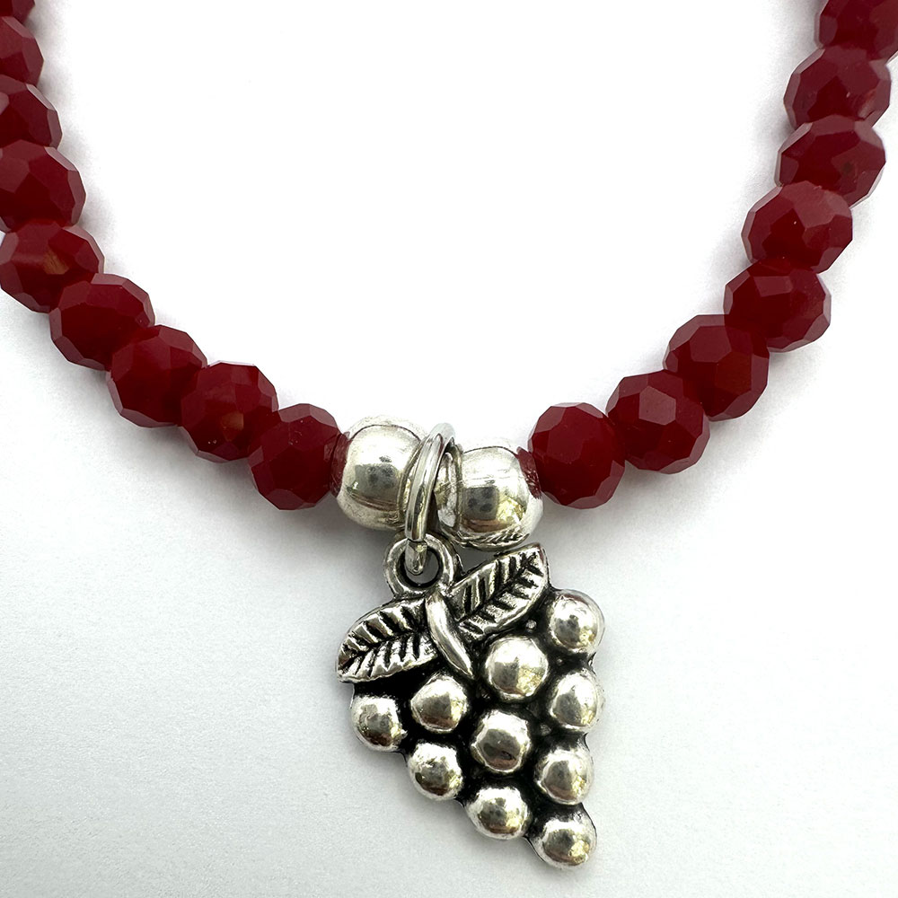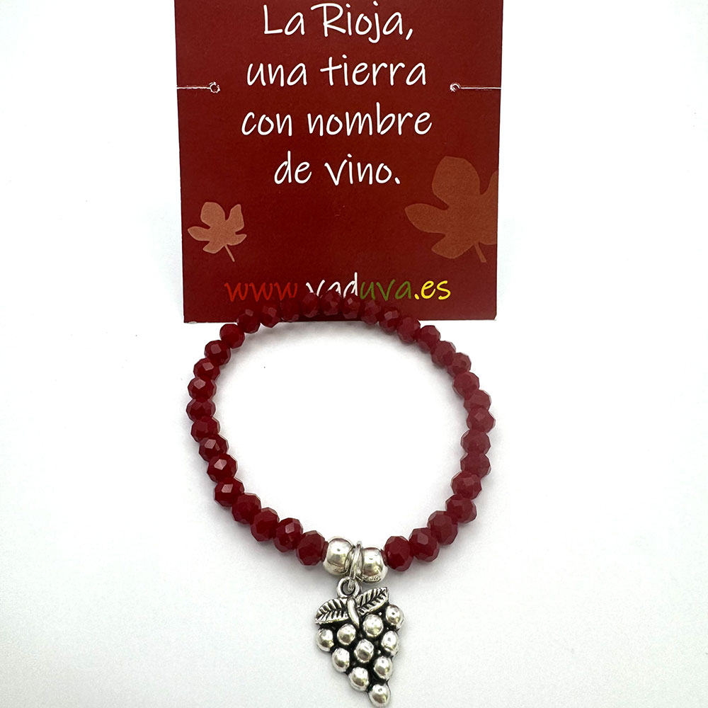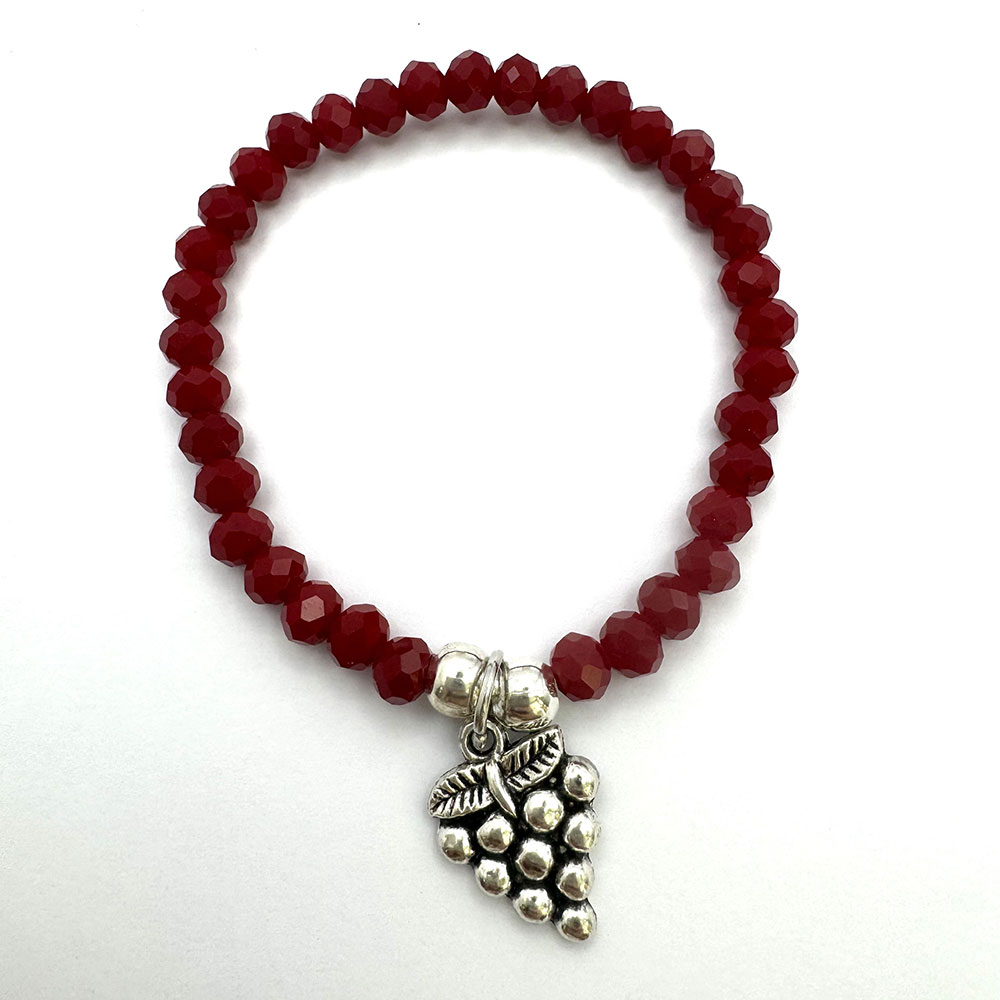 Pulsera elástica ajustable de cristal checo granate y uva de metal