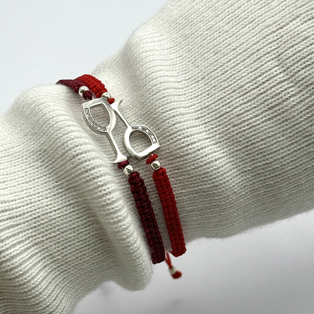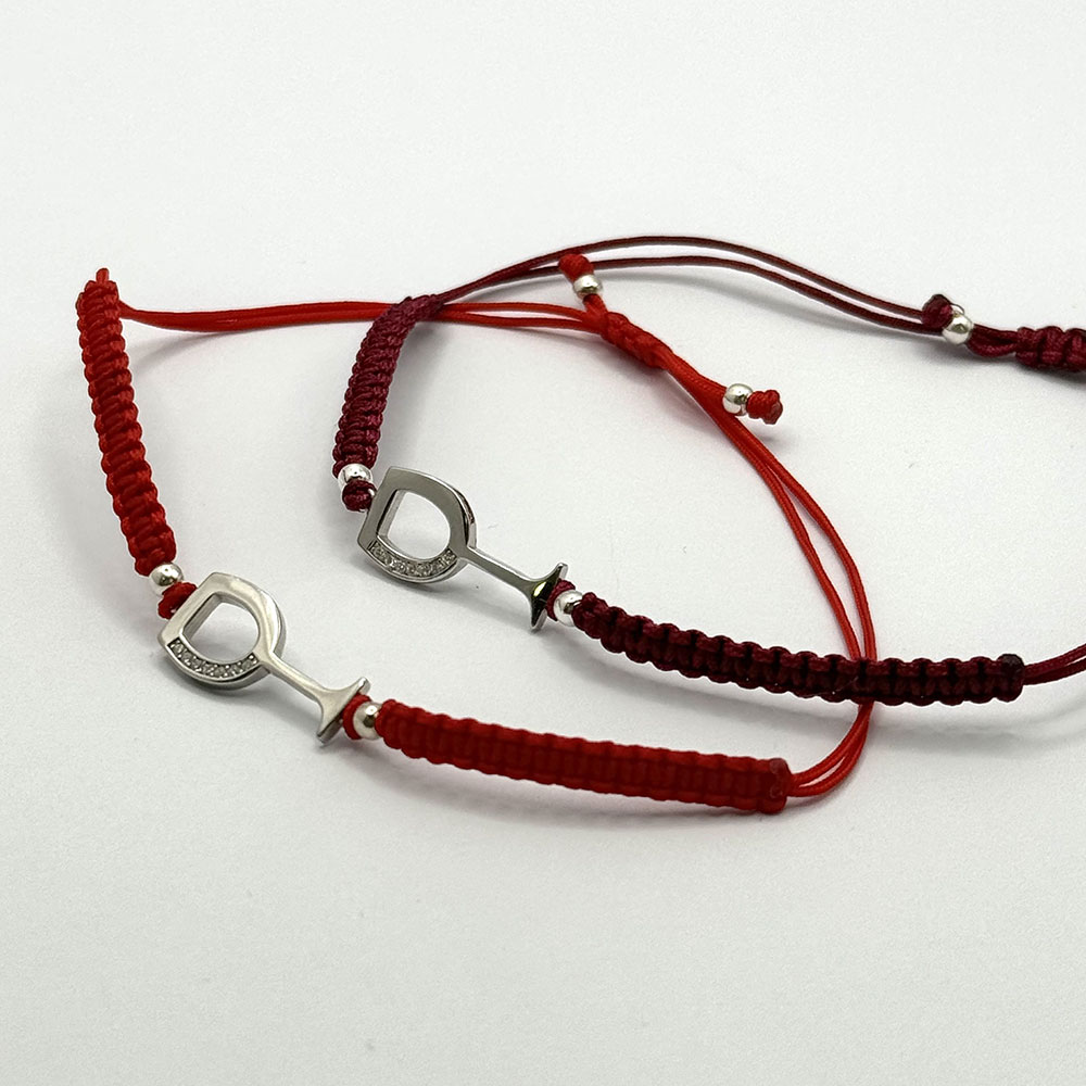 Pulsera de hilo de macramé ajustable a tu muñeca con nuestra emblemática copita de vino de plata de ley 925 con circonitas.